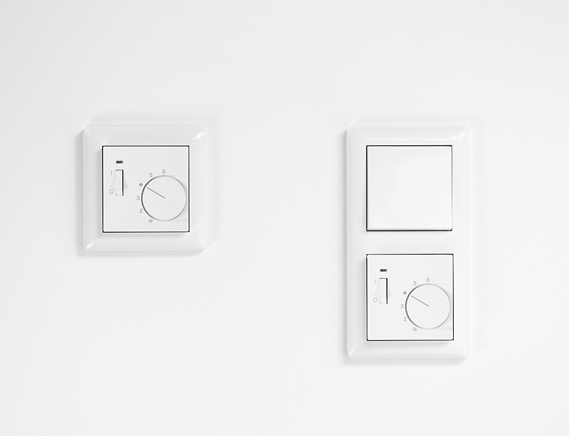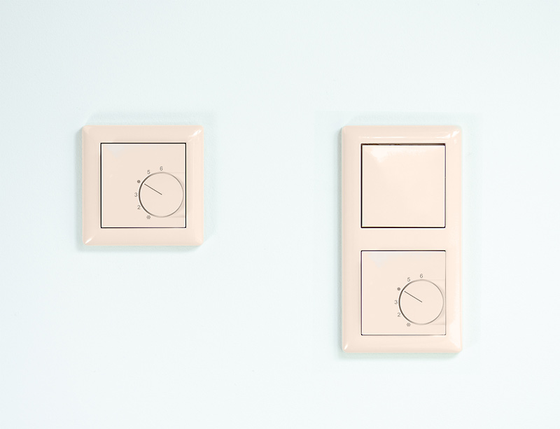 Beschreibung: RTR-5040 (rg) Raumtemperaturregler u.P., 230 V AC, einschl. Zentralscheibe, ohne Abdeckrahmen, für Stellantriebe stromlos offen und stromlos geschlossen, Triac-Ausgang für max. 5 Stellantriebe (3W elektromechanisch), ohne TA-Eingang, Einstellbereich 5-30°C mit Bereichseinengung, mit Berührungsschutzkappe, Farbe: reinweiß glänzend, ähnlich RAL9010, passend in nahezu alle Schalterprogramme mittels Zwischenrahmen 50x50mm (nicht im Lieferumfang enthalten)