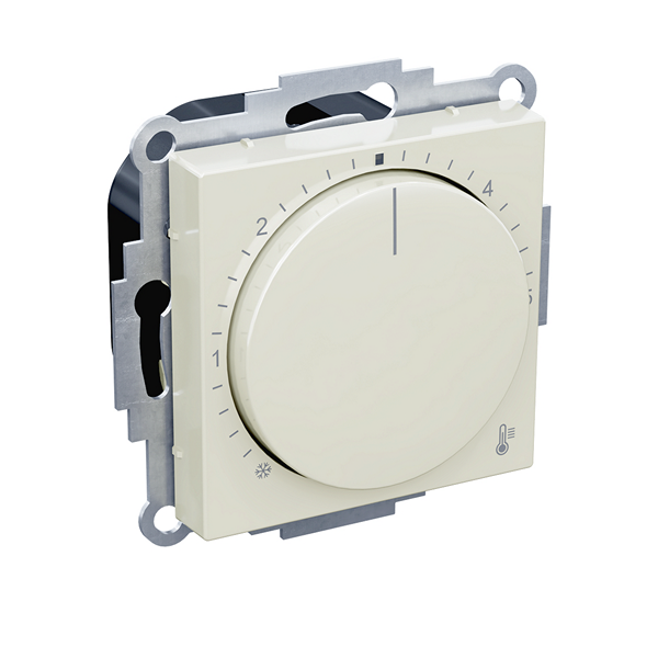 Beschreibung: RTR-7010 (cg) Raumtemperaturregler u.P., 230 V AC, einschl. Zentralscheibe passend für JUNG-Schalterprogramme der Serie LS [LS 990, LS-design], ohne Abdeckrahmen, Farbe cremeweiß glänzend, ähnlich RAL1013, Öffnerkontakt 10(4)A, Einstellbereich 5-30°C mit Bereichseinengung, Temperaturabsenkung, Berührungsschutzkappe, für Stellantriebe stromlos geschlossen