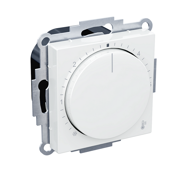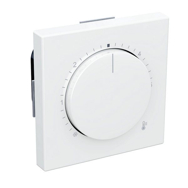 Beschreibung: RTR-7010 (rg) Raumtemperaturregler u.P., 230 V AC, einschl. Zentralscheibe passend für JUNG-Schalterprogramme der Serie LS [LS 990, LS ZERO, LS-design, LS plus] und Gira Flächenschalter, ohne Abdeckrahmen, Farbe reinweiß glänzend, ähnlich RAL9010, Öffnerkontakt 10(4)A, Einstellbereich 5-30°C mit Bereichseinengung, Temperaturabsenkung, Berührungsschutzkappe, für Stellantriebe stromlos geschlossen