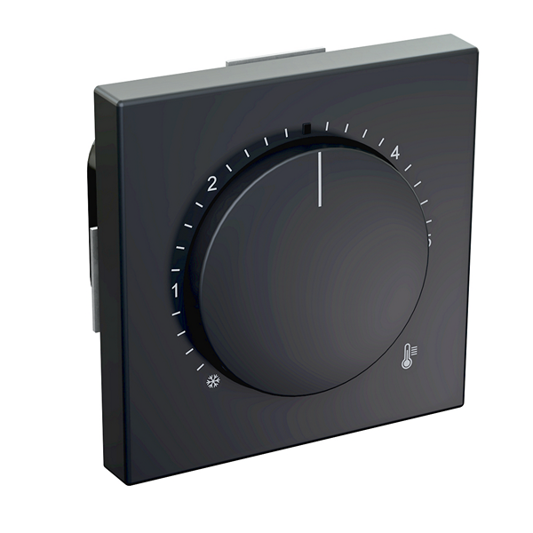 Beschreibung: RTR-7010 (swg/JU) Raumtemperaturregler u.P., 230 V AC, einschl. Zentralscheibe passend für JUNG-Schalterprogramme der Serie LS [LS 990, LS ZERO, LS-design, LS plus, LS CUBE], ohne Abdeckrahmen, Farbe schwarz glänzend, ähnlich RAL9005, Öffnerkontakt 10(4)A, Einstellbereich 5-30°C mit Bereichseinengung, Temperaturabsenkung, Berührungsschutzkappe, für Stellantriebe stromlos geschlossen